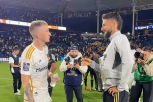 此役罗伊斯为洛杉矶银河打进2球,吉鲁则担任替补,没有为洛杉矶FC出场,两人赛后聚在一起聊天,美职联官方社媒晒出视频,配文:“欧洲巨星在德比战后相聚。”